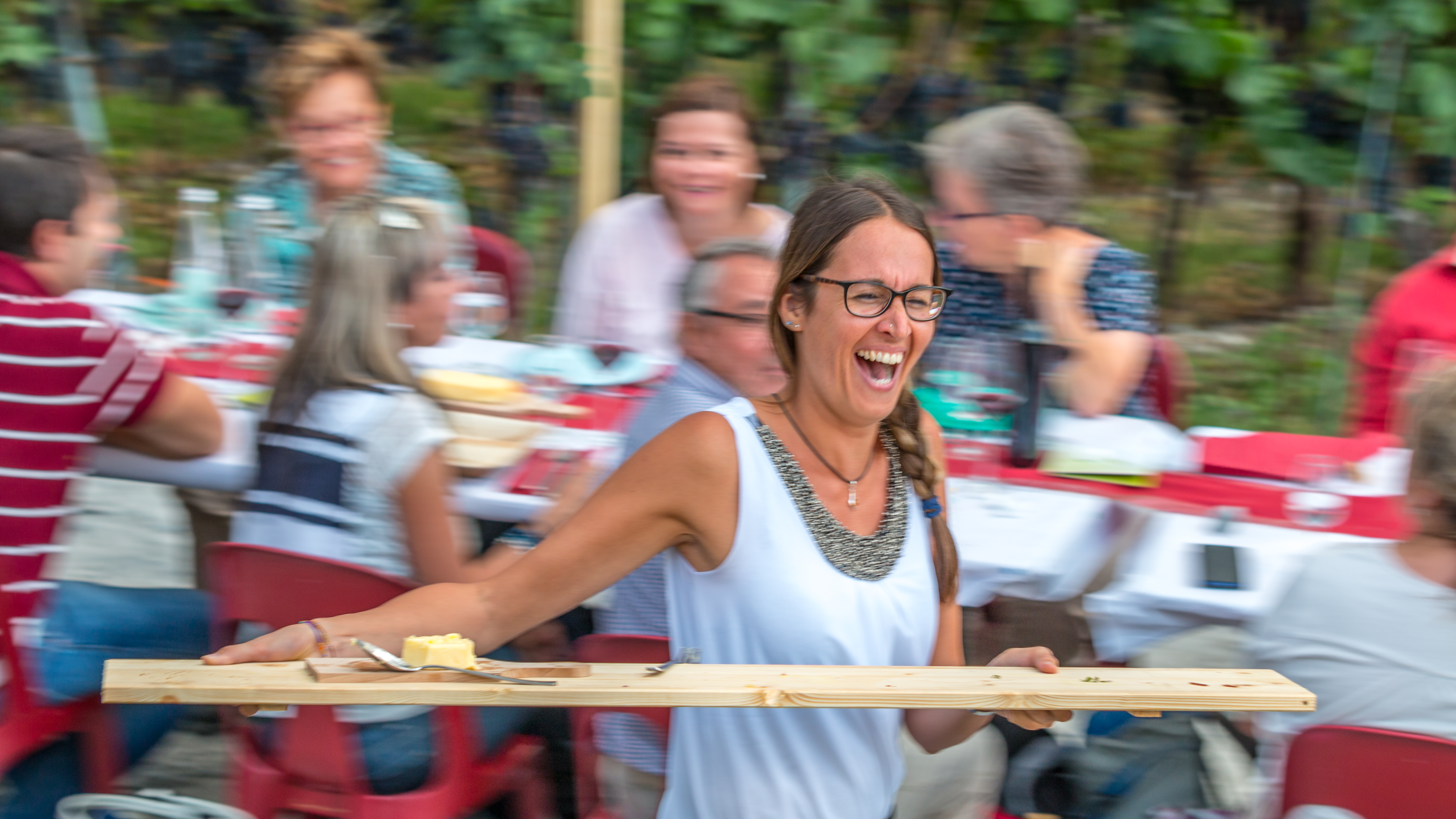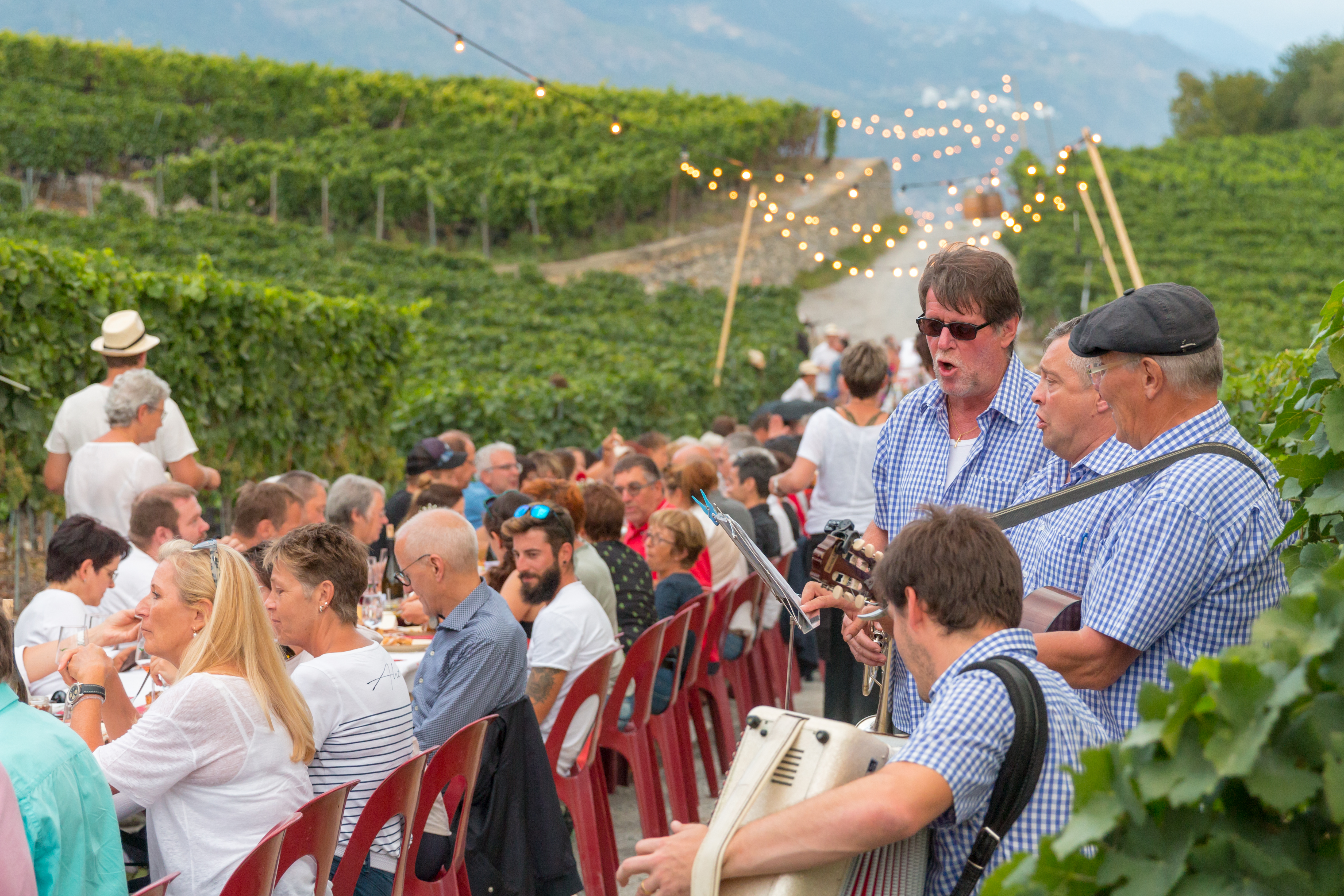 Tavolata rime avec partage et convivialité. Imaginez-vous 350 personnes réunies autour d'une seule et même table au milieu des vignes partageant un délicieux repas composé essentiellement de produits locaux, le tout dans un cadre musical. Saveurs locales et jovialité sont à l'honneur. Que vous soyez en couple, entre amis ou en groupe, le Parc naturel Pfyn-Finges et ses entreprises partenaires se réjouissent de vous accueillir à la plus grande Tavolata du Valais, prix Best of Wine Tourism en 2022.